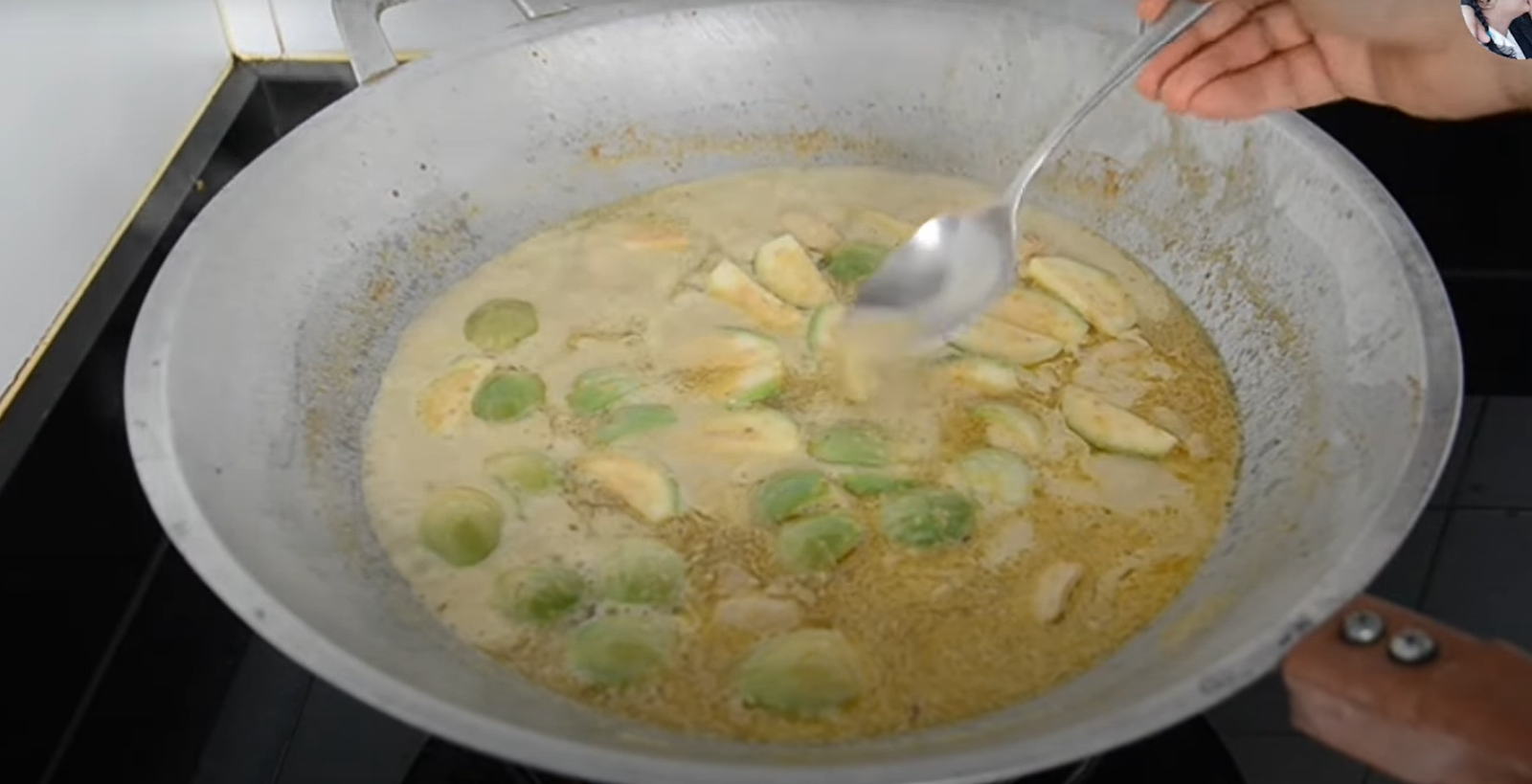 - Once boiling, add the Thai eggplants and let them cook for a few minutes.